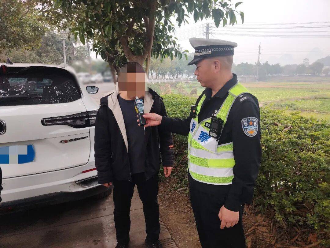 当日10时许,忻城交警在该路段设卡检查。期间,一辆车牌号为桂GCY***的小汽车从城区方向往城南方向行驶而来,民警示意车辆靠边接受检查时,敏锐地察觉到驾驶人身上散发着一股酒气味。