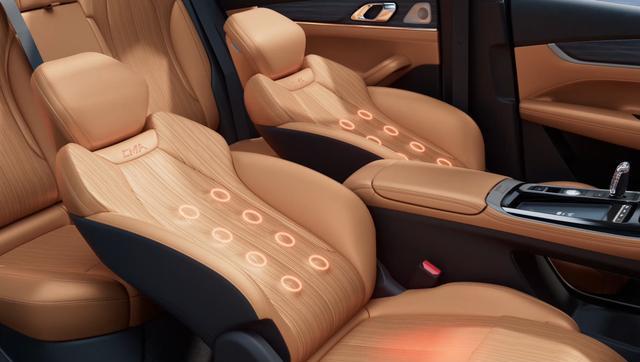 内饰上,座舱设计风格简约,提供琥珀金和松露灰两种配色。新车配备25.6英寸AR-HUD抬头显示+15.4英寸中控屏,内置7纳米工艺的龍鹰一号芯片以及Flyme Auto智能座舱系统。前排座椅具备加热、通风、按摩功能,副驾是带电动腿托的“女王副驾”,并搭载了包含头枕音响在内的Flyme Sound 16扬声器音响系统。